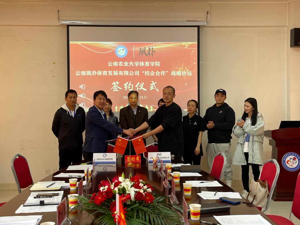 会上,公司党委书记初晓辉与云南飒扑体育发展有限公司董事长兼总经理张倚玮现场签订校企合作协议。