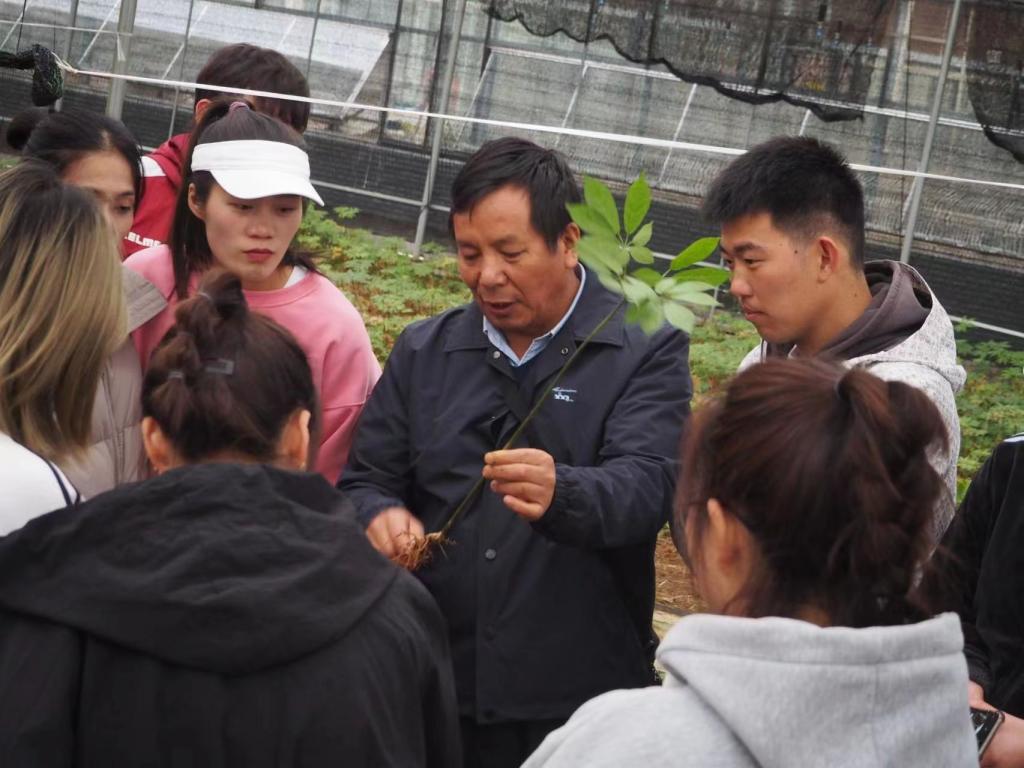 在蒋老师的带领下一起走进田间地头。途中重点讲述了当今农业科学前沿研究,让广大同学了解到农业科学前沿技术、动态及发展趋势。