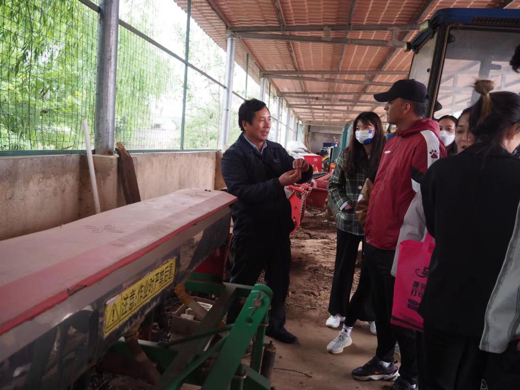 蒋老师带领同学们参观了农业机械基地,并讲述了中华耕读文化的演变。重点谈到,在新的历史时期,弘扬耕读文化精神,对于增强全民族的国家观念和爱国主义精神,提高中华文化影响力和中华民族凝聚力,具有十分重要的现实意义。让同学们深刻了解到了中华农耕文化的价值与意义。