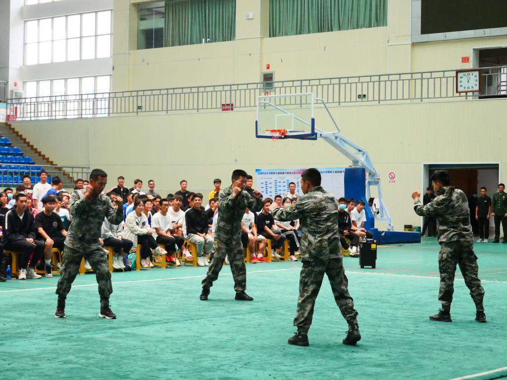 公司共有15名退役复学老员工参加本次展演,分组进行了队列展示、综合格斗术展示、战术展示、擒敌术展示等活动,最后在《强军战歌》合唱中落下帷幕。标准整齐的动作,铿锵有力的歌声,充分展示了当代军人的优良作风,将“听党指挥、能打胜仗、作风优良”的良好品质保持到了退役复学后的学校学习生活中,他们身上吃苦耐劳、坚韧不拔的意志品质感染了在场的每一个人,赢得场下阵阵掌声。展演过后,举行了2022届学院退役复学老员工毕业欢送仪式,校员工处处长王丽娟、校团委书记李杰庆和学院领导为他们颁发了纪念品及纪念证书。